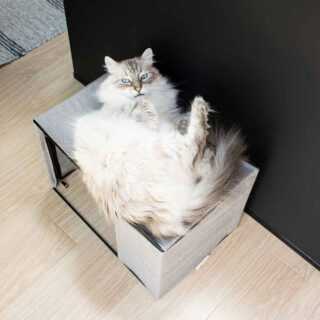 Katten vinden het prettig om wat door te hangen als ze liggen. Een hangmat vinden ze dus heerlijk. Maar het is uiteraard begrijpelijk als je geen gaten in de muur wilt boren, of zuignappen aan je ramen wilt. Dan is de Odillia een ideale uitkomst. Deze hangmat geeft je kat een plek om te relaxen op een stukje van de grond. Daarnaast is de Odillia ook een schuilplaats: hij wordt geleverd met drie (grijze) hangmatten, die je op verschillende manieren kunt bevestigen om doorgangetjes te creëren! De basis is gemaakt van zwart metaal. De hangmat heeft een kan een gewicht tot maximaal 10 kg dragen. Ook grotere katten kunnen dus op de Odillia terecht!
